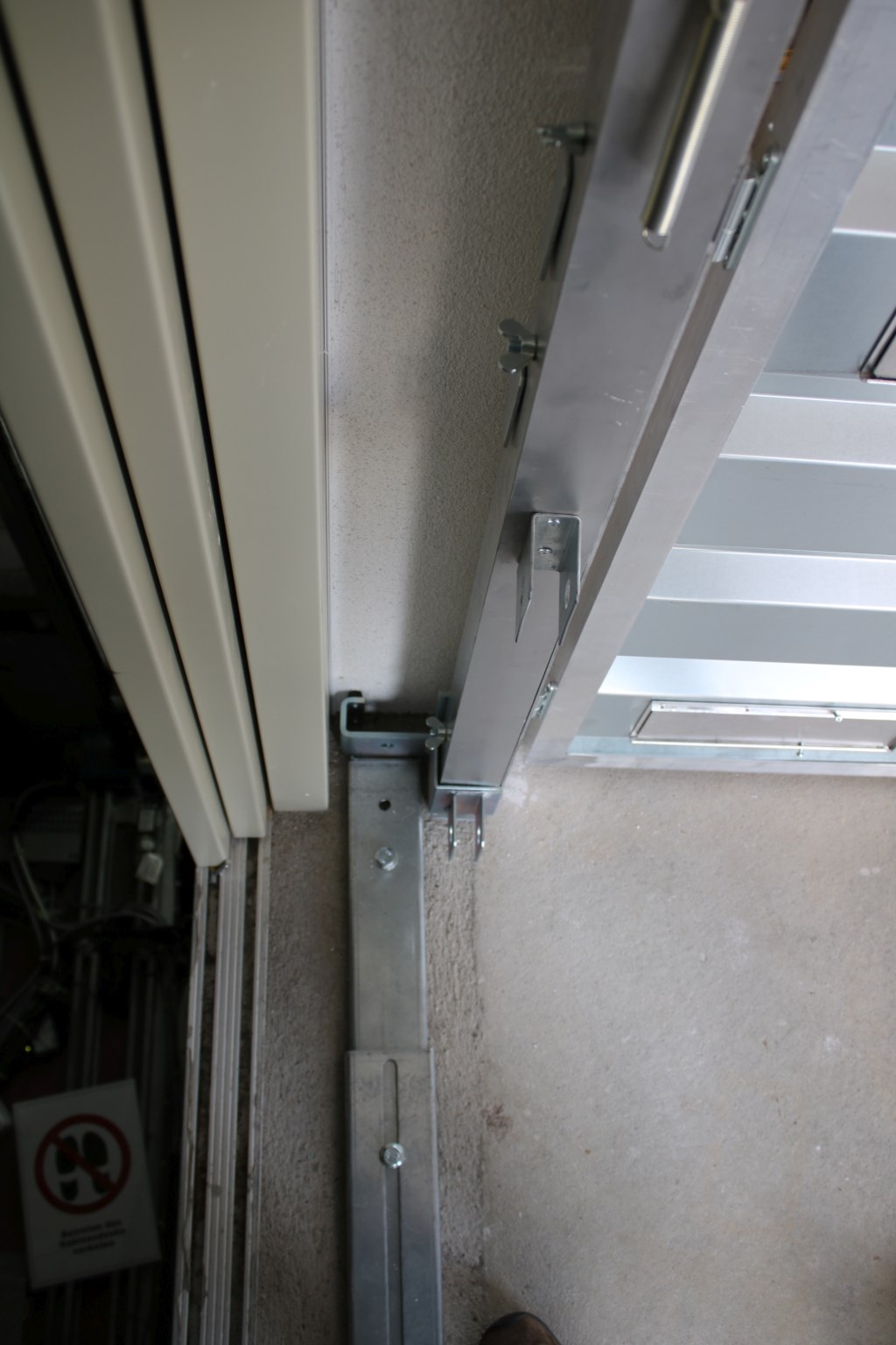 For use in case of missing front returns. Is mounted angled from shaft wall and threshold and secured with an screw anchor or anchor plug into the threshold or into the shaft wall.