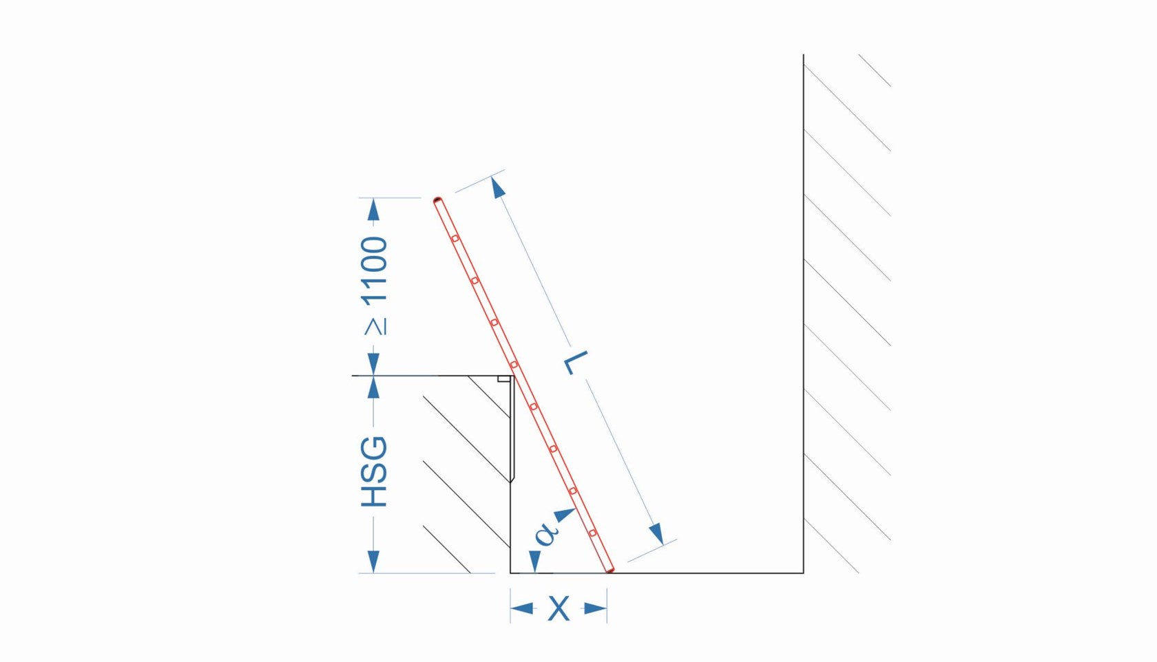 according to EN 81-20, ladder length: 1.80 m closed, 1.45 m open, number of rungs: 4, incl. floor attachement, knotted chain and fixing material.