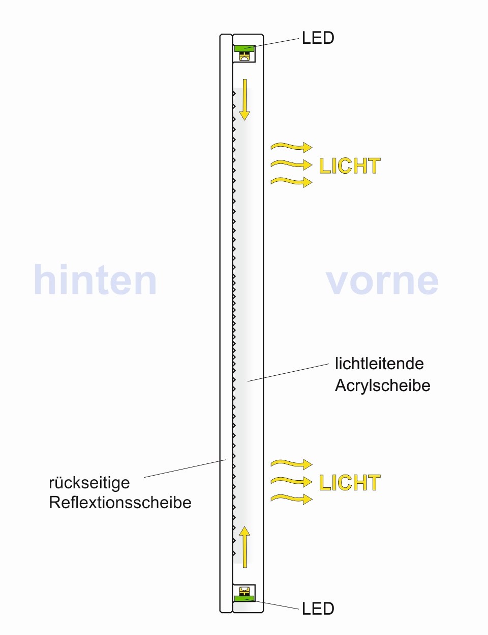2-reih. LED-Acrylglasplatte gem. Kundenvorgabe