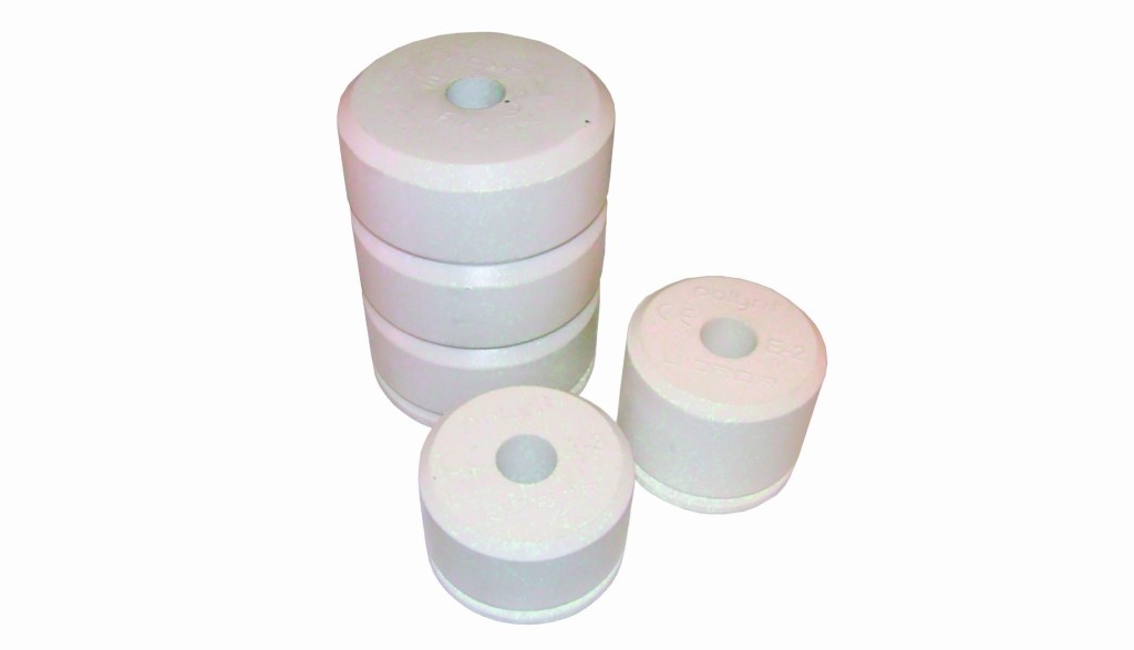 Lift buffer T1 with foamed-in steel plate. Velocity v=0,7-1,0m/s. 80x80mm (DxH). Material Polycell. "without CE marking" IMPORTANT ADVICE! T, E, P and G series lift buffers are certified according to EN 81 -1/-2. Lift buffers of the old series cannot be supplied with a CE marking, as the lfit buffers are not certified according to the current state of the art (EN 81 -20/-50). Since safety components in Europe (EEC) must bear the CE marking, we expressly draw attention to the fact that lift buffers (without CE marking) in Europe (EEC) can be used in an uncertified elevator system though.