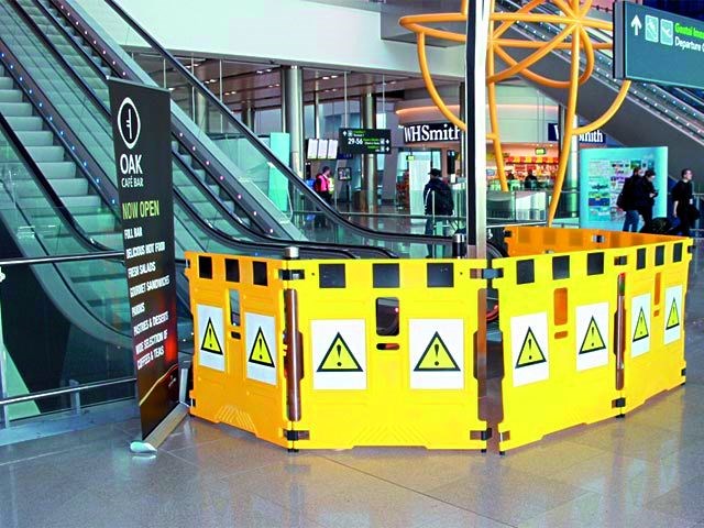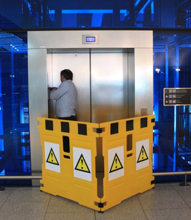 With plastic hinge, material: polyethylene, colour: yellow/black, panel dimensions 800(H)x970(W)x30(D)mm, panel weight for one element: 3 kg