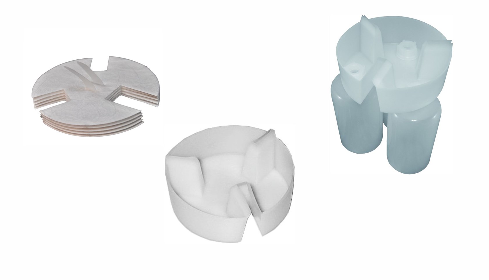 made of synthetic material, for guide rail widths from 5 - 16 mm, diametre 150 mm, height 50 mm, stackable