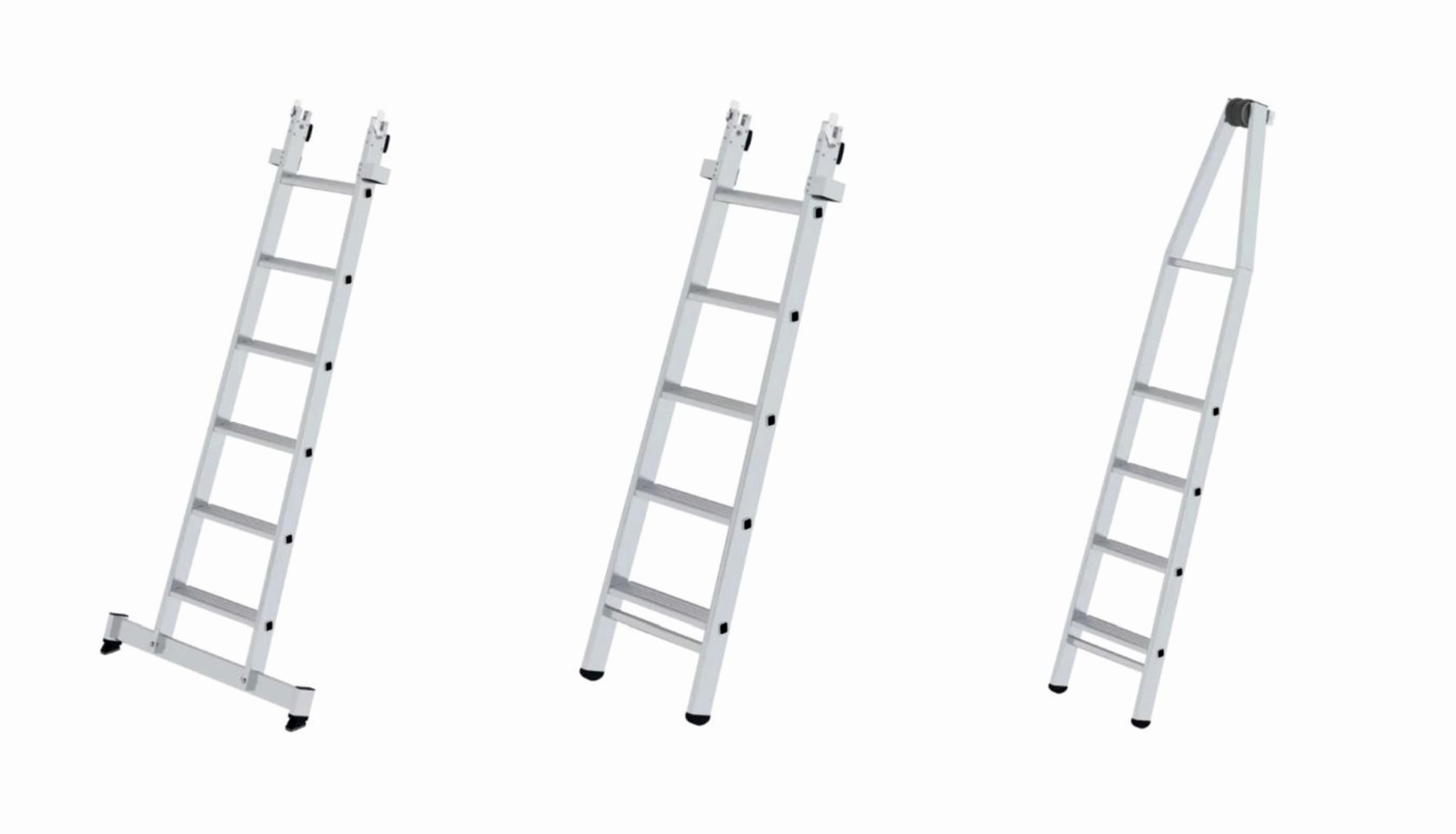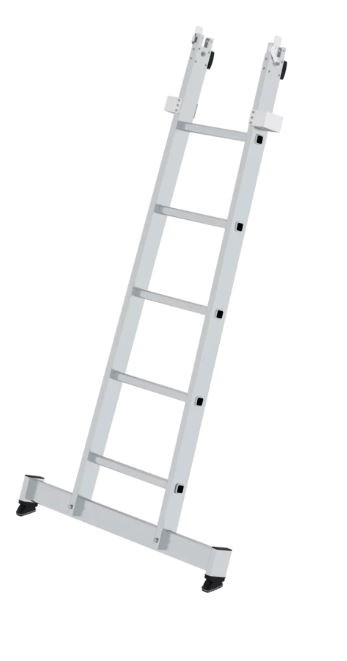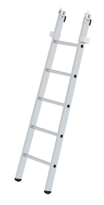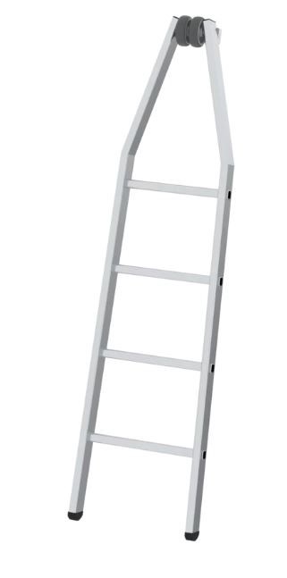 Plug ladder made of aluminium, 5 steps, ladder length 1,65m, top width 340mm, bottom width 430mm. 3 ladders max. can be plugged togehter.