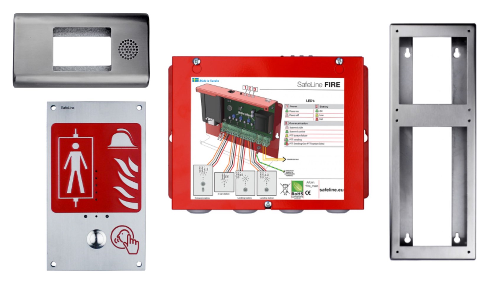SL6 Fire02 Cabin telephone station with key switch, flush mounting This cabin telephone station is intended for mounting in the input level and has an integrated triangular key switch. After turning the triangular key switch, communication is established between all the stations connected in the Intercom system. The fire brigade can then easily communicate and evacuate captured persons.