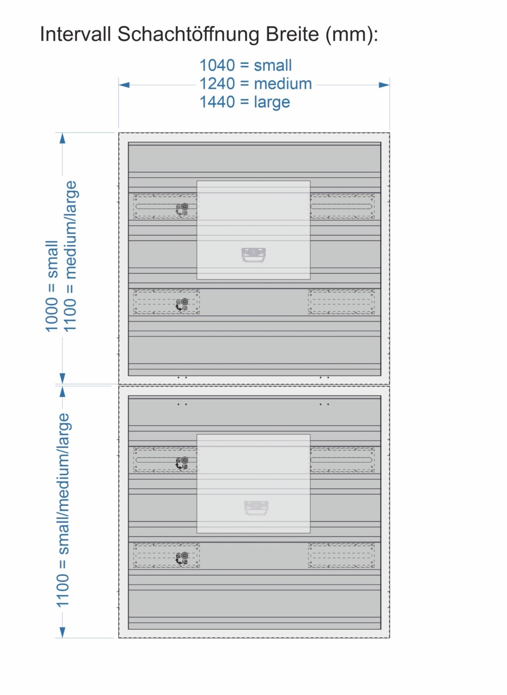 Clear height shaft wall opening: 1985 to 2240 mm.