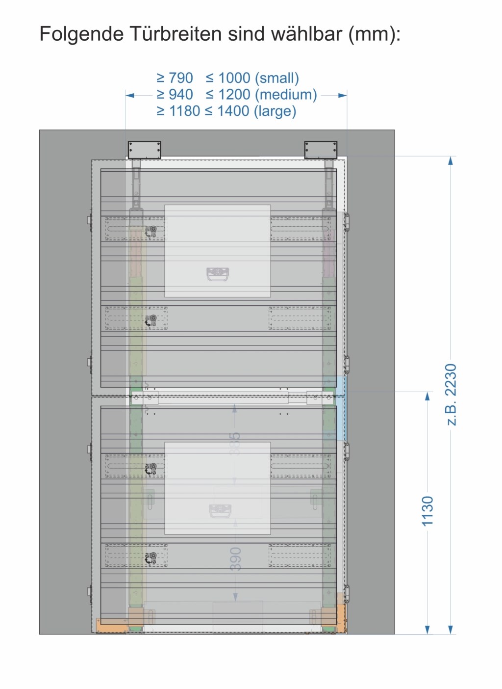 | lockable: | yes, with four triangular rotary bolt locks from the inside and outside |