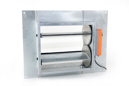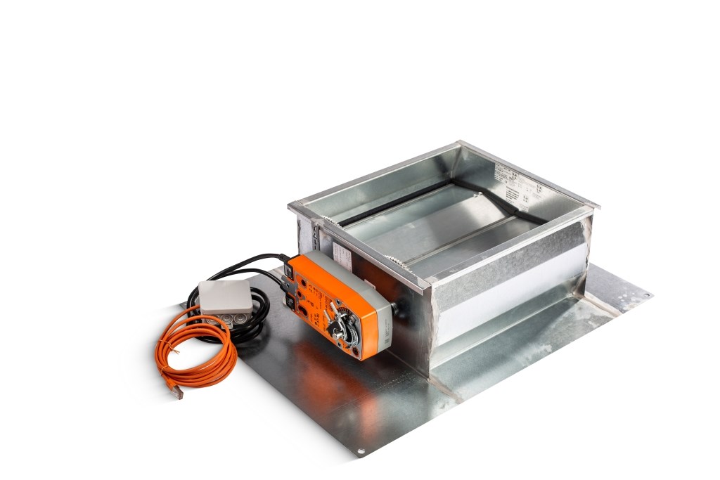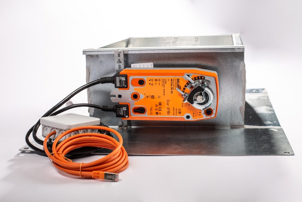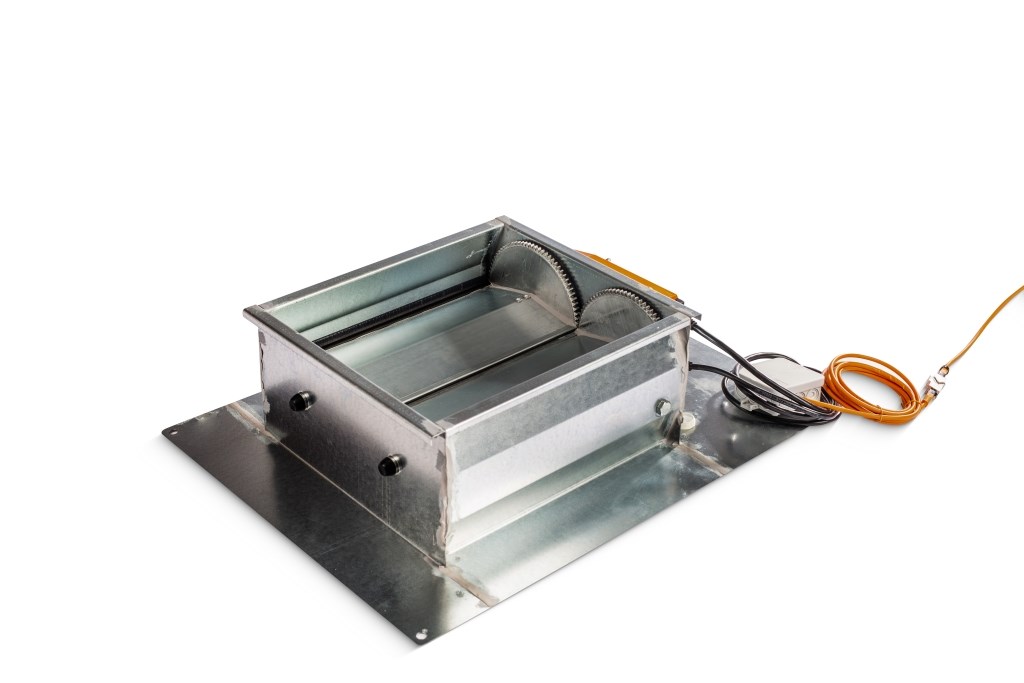 The actuator of the shutter is equipped with an integrated limit switch for determining the ""damper open or closed"" position, for forwarding and evaluation by an external body (building- or lift control). In addition, the actuator runs almost noiselessly in ventilation mode and is not audible in adjacent rooms.
