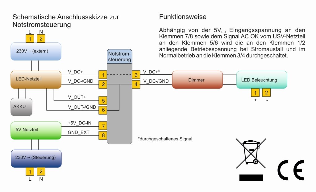 Notstromsteuerung für LED-Kabinenlichtabschaltung inkl. Dimmer