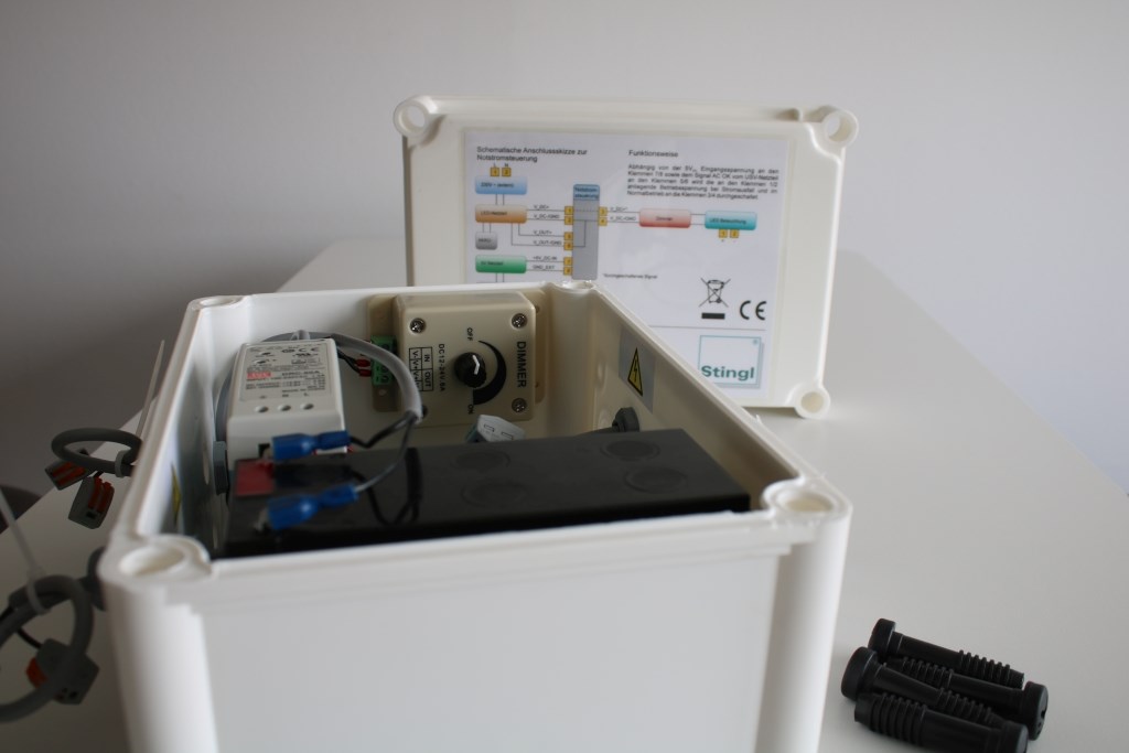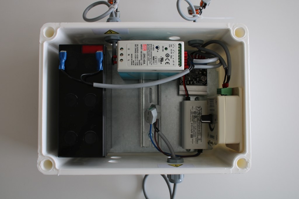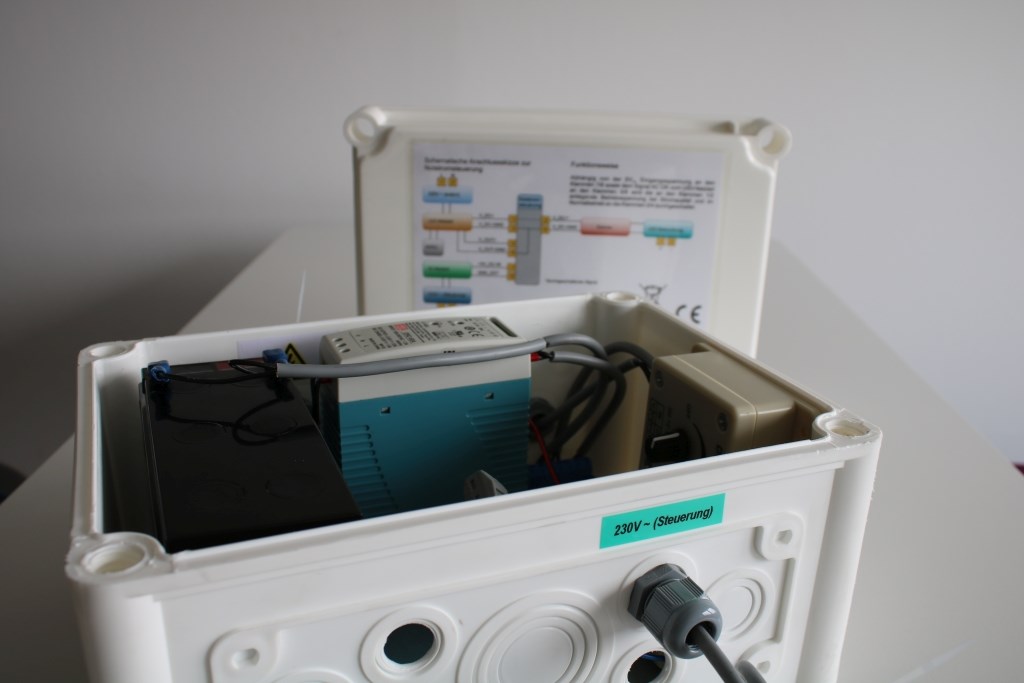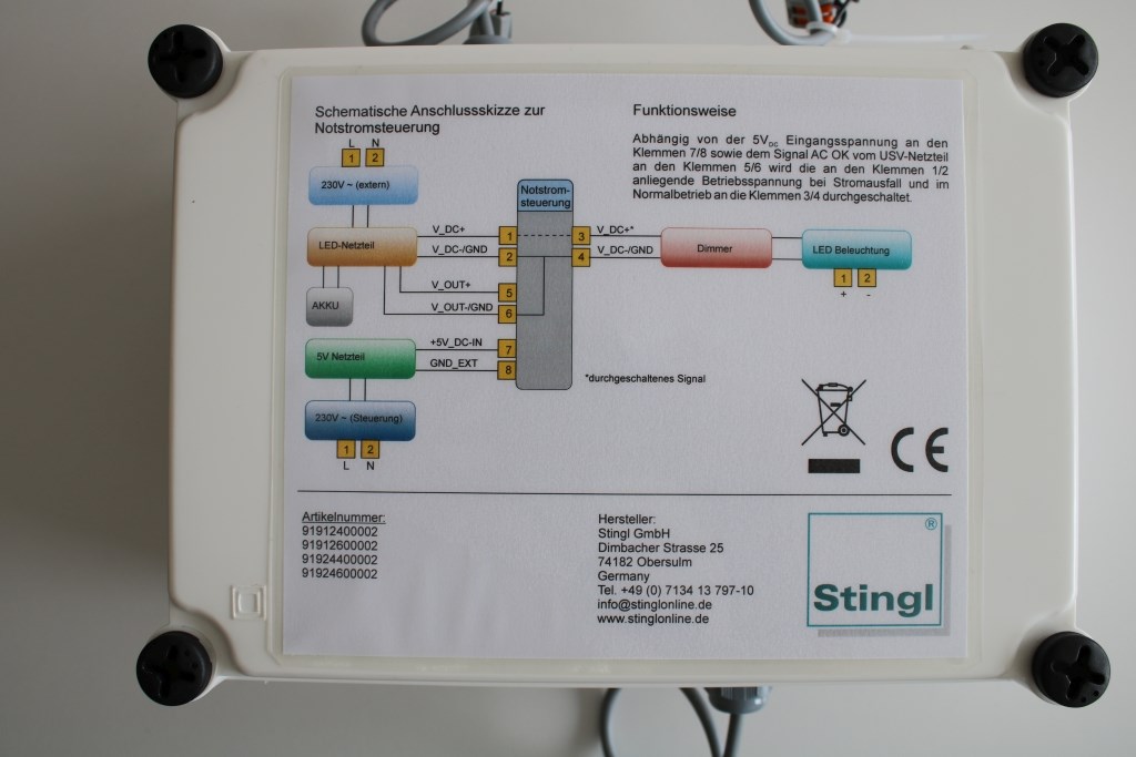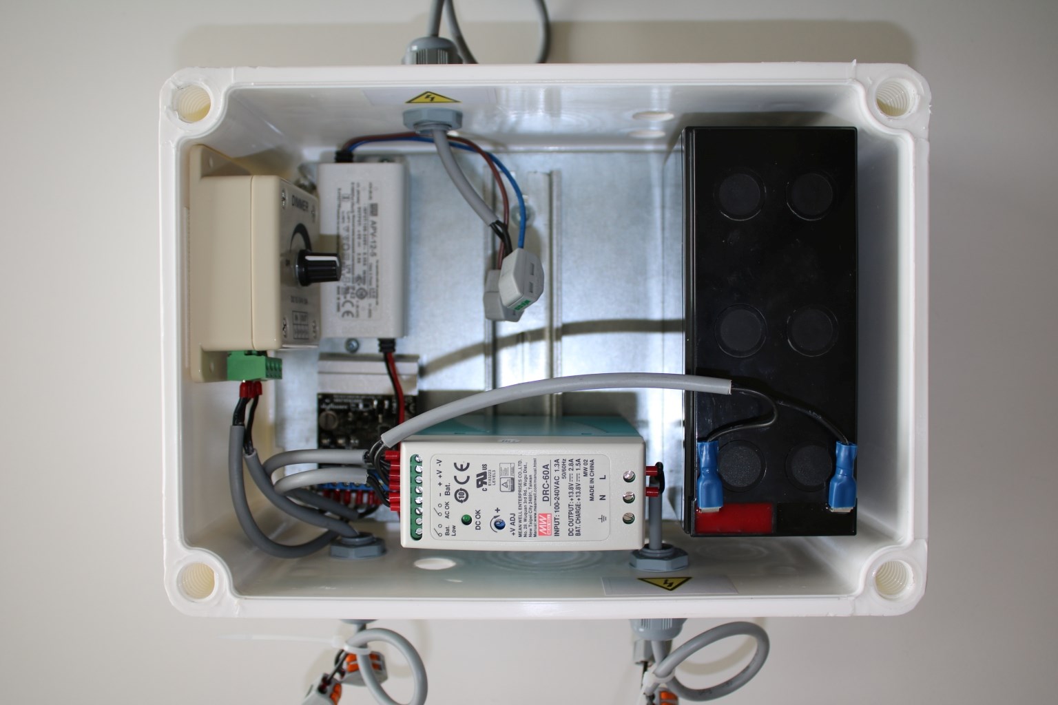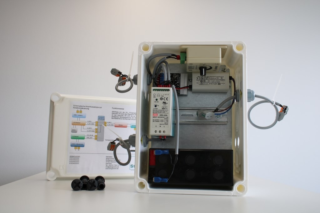 Die Notstromsteuerung 24 V, 60 W, regelt die Akkuversorgung bei LED-Kabinenlichtabschaltung und Stromausfall. Die LED-Kabinenlichtabschaltung erfolgt über die Aufzugssteuerung.